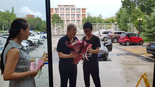 早上7点,负责送花的志愿者们早早地来到了研究所大厅,他们手捧着鲜花和感谢信等候老师们的到来。对每一位走来的老师都道一句“教师节快乐”,并送一支芳香四溢的康乃馨,简单但却诚意满满的活动使老师们的脸上都洋溢着幸福的笑容。