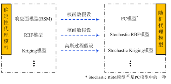 工程热物理研究所无人飞行器气动设计空间维度高、计算量大且非线性程度强,这对CFD的非嵌入式不确定性量化研究提出了巨大的挑战。针对这一问题,目前较为可行的求解策略主要分为两种:一种是运用确定性代理模型的方法,此方法的优点是确定性代理模型的可选择性多,且在较少随机变量的情况下,对不确定性问题拥有一定的处理能力。但随着随机变量个数的增加,这种方法的可行性会越来越差。同时由于确定性代理模型是针对确定性问题进行的建模(如图2),因而不能很好地处理不确定性问题;另一种是运用随机代理模型的方法(如图1),这种方法专门针对不确定性问题进行建模,可以对多随机变量问题进行分析,由于计算量小且响应信息可靠,最近受到广泛关注。