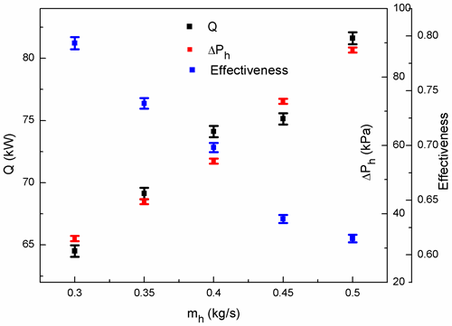 图2 超临界CO2冷却器换热量,压降和效能变化(Huzhong Zhang et al., JTS, 2020)