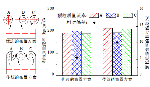 图1 旋风分离器布置对循环回路之间颗粒质量流率分布均匀性的影响