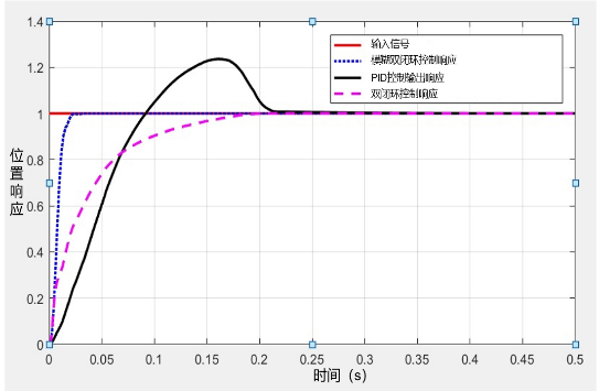 通过上述仿真分析可知,模糊双闭环控制能够有效改善旋转直驱阀的位置输出响应,而阀芯的位置输出响应与燃油流量为线性关系,因此,该算法为控制发动机燃油流量提供了一种可靠的控制算法。