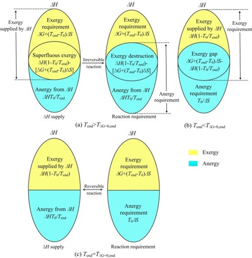 与品位方程,阐明了反应过程中能质转化与品位变化的本征规律,给出了通过调整反应熵以及外界补偿