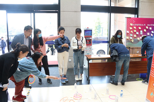 4月26日,知识产权趣味挑战活动使宣传周活动再度掀起高潮。通过飞镖、套圈、抛绣球等趣味游戏的方式,将知识产权宣传融入其中。飞镖活动中,参与人员根据飞镖命中区域回答相应的问题。套圈活动中,老师同学们大展身手,想尽办法,有时连中五环欢呼雀跃,有时却也为难以控制的套圈伤透脑筋,无论套圈的结果,大家都收获了游戏的乐趣,学习了相关的知识产权保护宣传语,在留言板留下了自己的感想,不少参与者还针对宣传语进行了讨论。抛“绣球”小游戏还考验了参与者的默契度,充满了随机性,在快乐中学习知识。