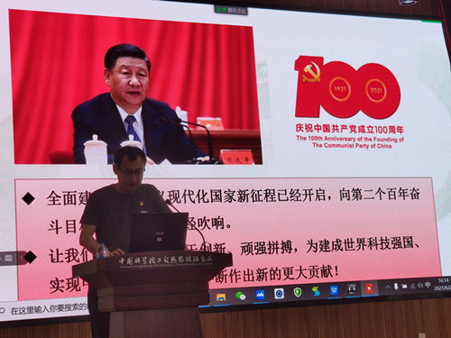 张宏武带领大家回顾了在革命、建设、改革等各个历史时期党对科技事业的重视程度以及发展战略,展示了我国在创新驱动发展战略下取得的历史性成就和重大科技成果等不凡成就;结合习近平总书记对中国科学院提出的“加快打造原始创新策源地,加快突破关键核心技术,努力抢占科技制高点”要求,提示大家作为中科院的一员应该深入思考“如何才能持续保持成为党、国家、人民可以依靠、可以信赖的国家战略科技力量,如何做才能在四个率先的定位中直面问题、抢占先机、占据创新高点”,工作中需要带着这些问题去深入思考并努力践行;围绕2035年跻身创新型国家前列的战略目标,如何实现高水平科技自立自强,张宏武谈了自己的感想,他指出,面对存在的原始创新能力还不强、创新体系整体效能还不高等现状,唯有奋起直追才能抓住新一轮科技革命和产业变革的机遇,实现人生价值。